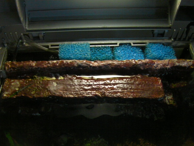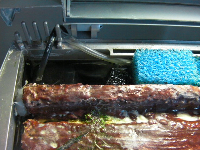 till pumpen…alltså bakom slimline…från höger till vänster fyllt med ppi 10 filter klippt i 3 remsor…samt småkuber för volym…