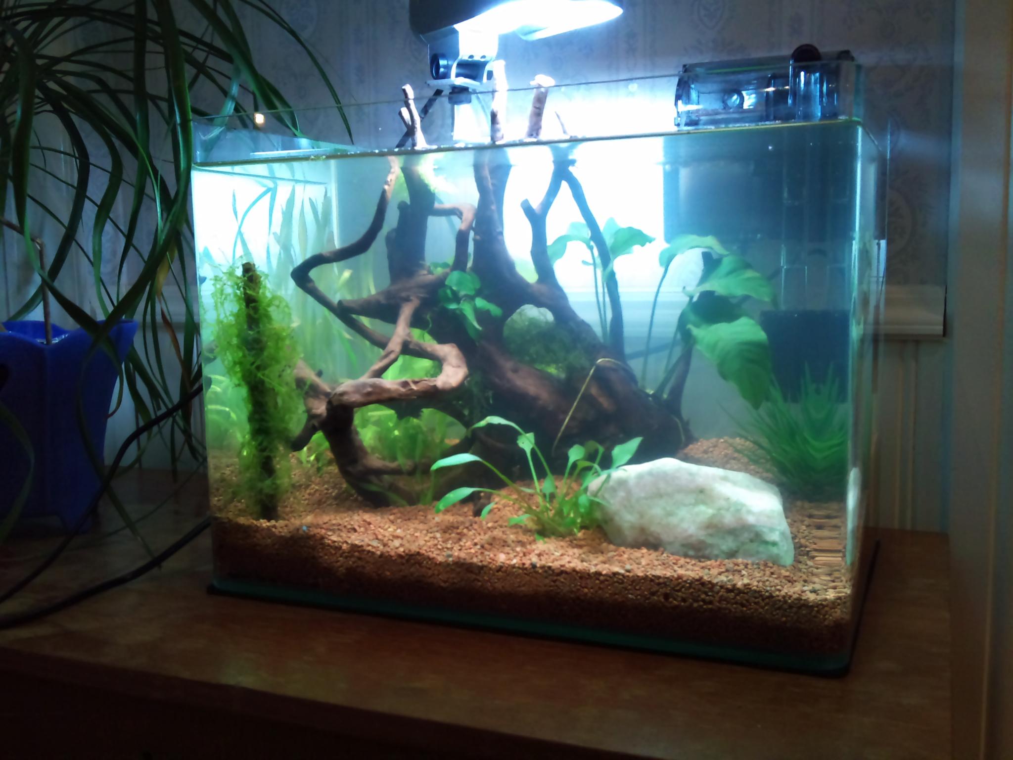 Ägnade hela kvällen till att koka rot och skrubba akvariet/kolla vattentätheten.