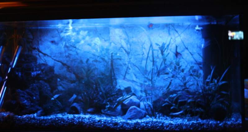 Bifogar lite bilder på akvarierna, bilden på 170L med moonlight tänt är lite missvisande. Det är inte riktigt så ljust i akvariet som det ser ut att vara på den bilden.