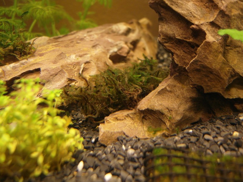 och en del mossor ville flyta upp till ytan så jag fick tynga ner dom med stenar.