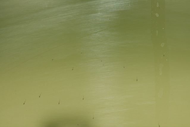 The larvae shortly before I transfer them to the saltwater (which I do 3 times per day). Please excuse the poor quality of the photos and the dirty glass ![]()