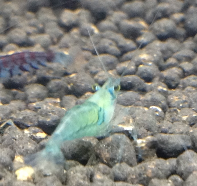 Speciellt en är lite kul, blå fläckar och ljusare blå i kroppen än övriga men röda ögonstjälkar och klart gula ögon. Försöker ta foto men det är räkrejs så han har lite bråttom.