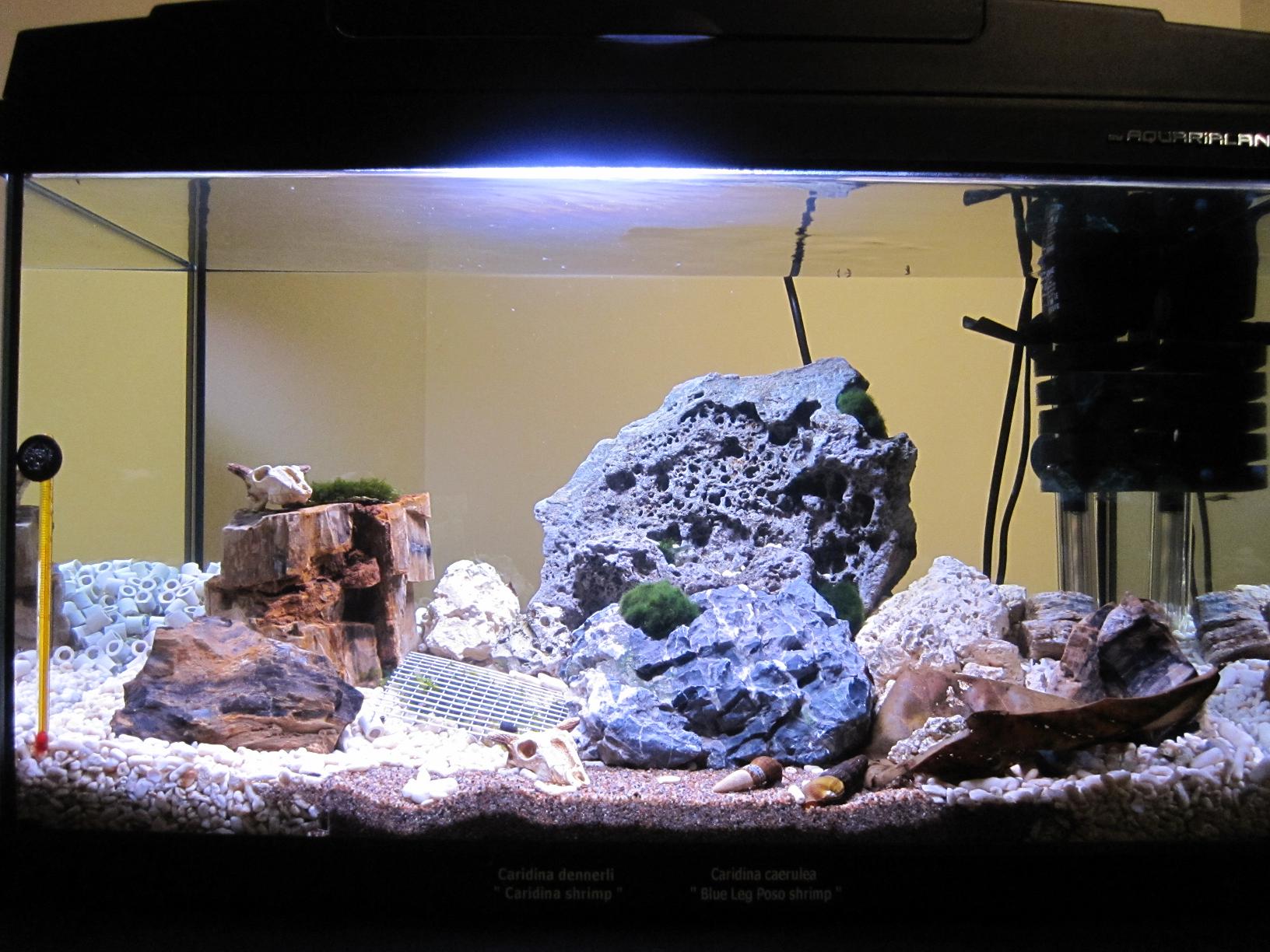 Jag har nån sand i botten mot bakruta för att få upp på höjden och sedan korallkross och kalkstenar