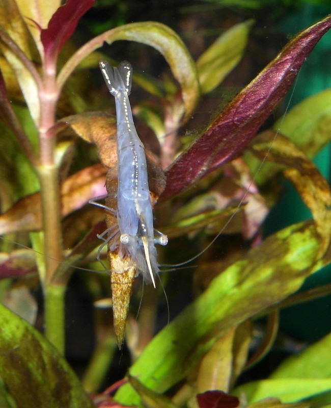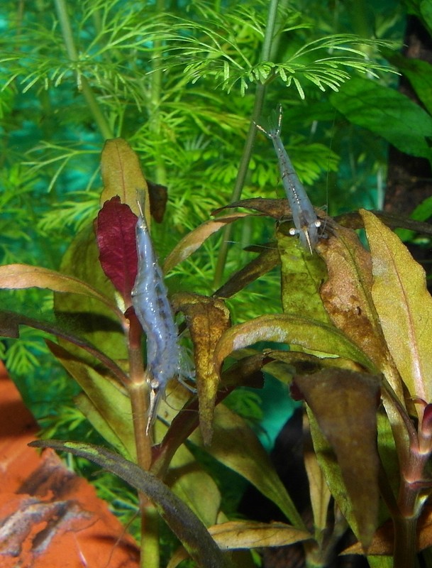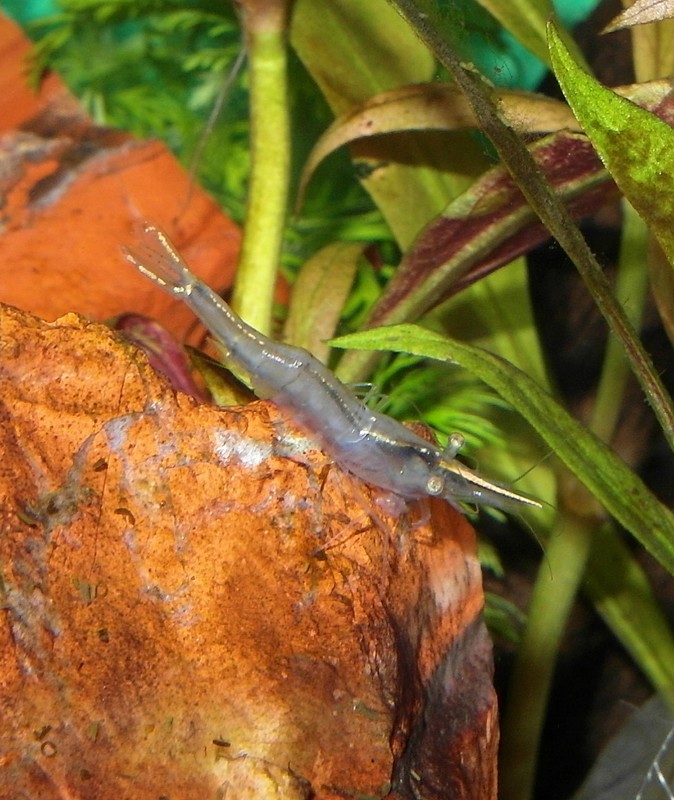 Dom var köpta som en ny art s.k. blå “Mini-Nashorngarnele, Caridina spec.”, men upptäckte när jag fick dom att det är den vanliga arten Caridina gracilirostris.