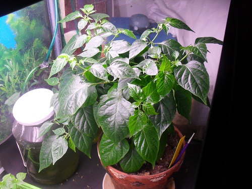 Andra sorter jag brukar rekommendera är Aji Cristal (mycket mild), Hot Lemon (ganska stark, grym till fisk och kyckling), och Rocoto (kräver tidig sådd men väl värt väntan, tjusigt med lila blommor också). Chili odlas gärna i ganska trånga krukor, 3-5 liter, bara man kan vattna ofta. Då får man snabbare fruktsättning, plus att man får plats med fler sorter ![]()