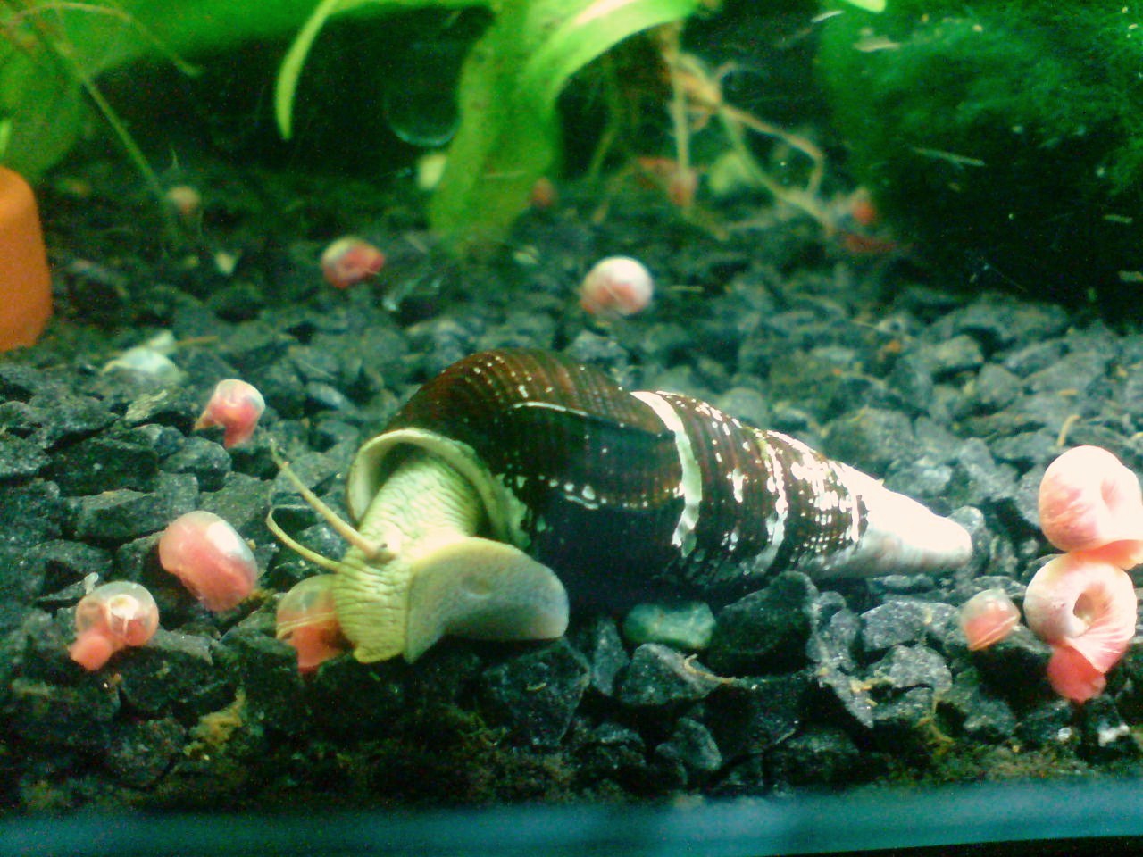 De är enkönade och de föder levande som människor! Oftast bara 1 bebbe åt gången men jag har fått tvillingar några gånger! har man snäckor av båda könen förökar de sig om de får mycekt mat!