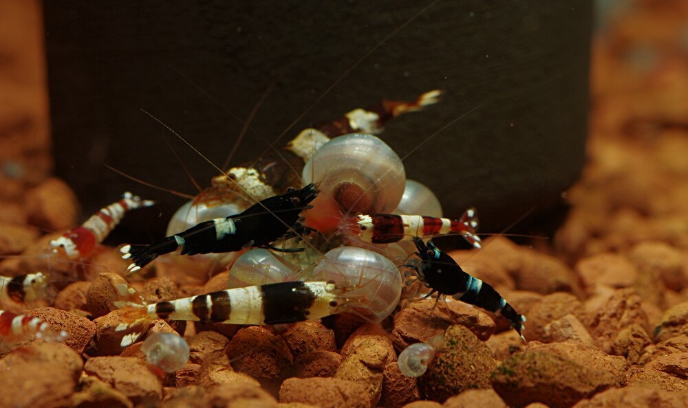 Hmm. Jag verkar få lite blandade resultat med min setup. Jag har 6 akvarier i ställningen med omvänt bf. Mitt taiwanbee kar där jag startade med ca 15 räkor, 50% från Jen och Sanna plus lite vanliga cr cb från hannover och djuraffären, detta kar går strålande med 70+ räkor idag. En del kk och winered har dykt upp kanske 7-8 som jag sett. Detta kar har jag kryddat med 3 super bb.