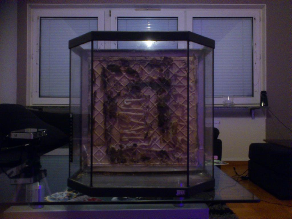 Akvariet är förresten på ca 27 liter om jag har räknat rätt. Botten är sprucken så jag tänkte höra med glasmästaren vad det kostar att kapa till en ny skiva. Och sen bara lägga den ovanpå den befintliga och silikona runt om.