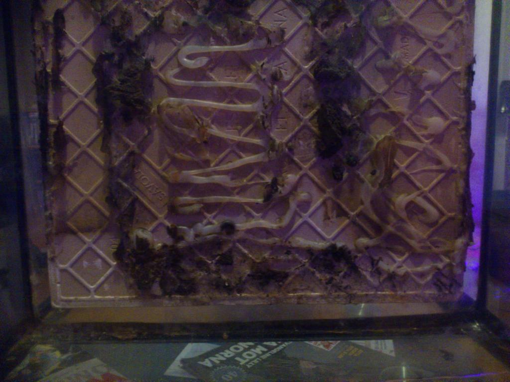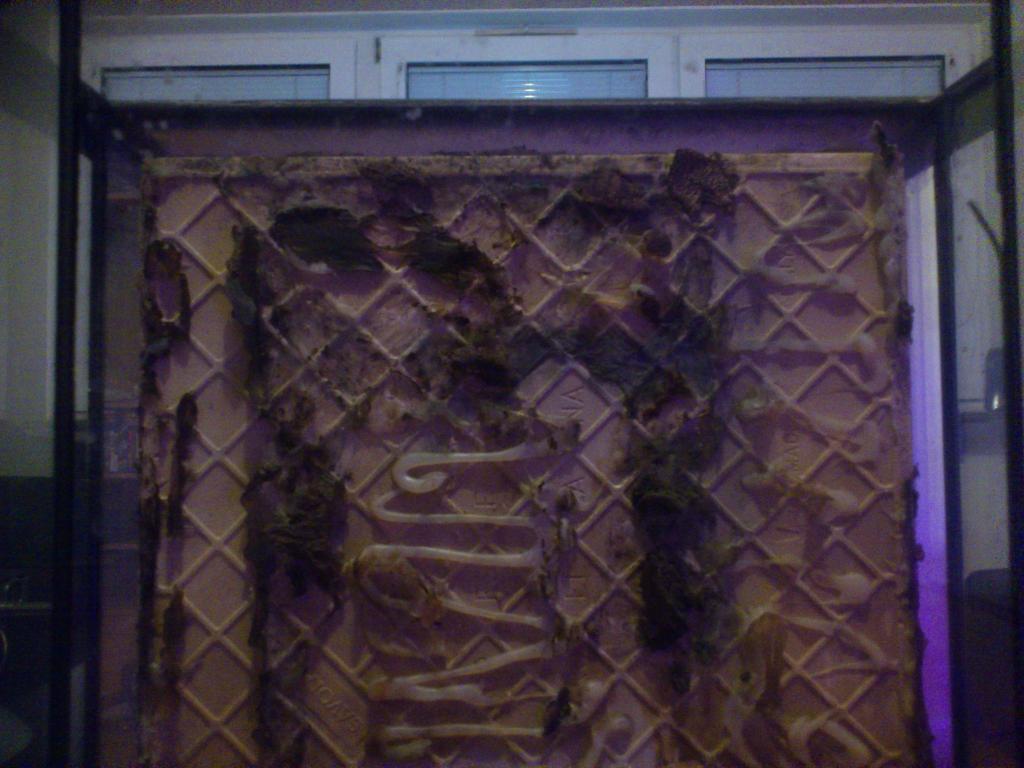 Hade tydligen haft växter på där. Antar att det varit någon sorts väv/fibermatta fastlimmad på den men vackert är det inte :lol: