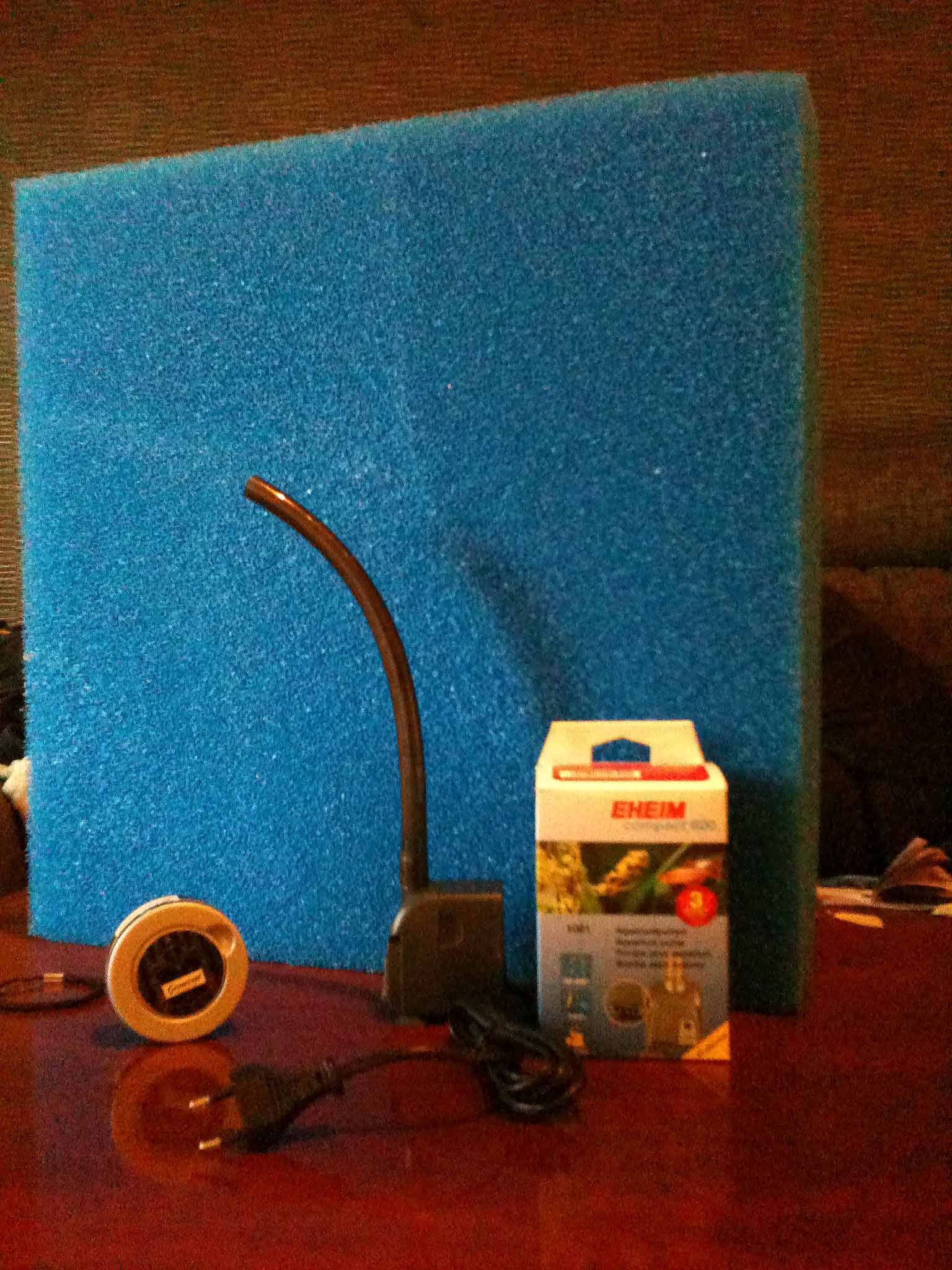 Pump, EHEIM Compact 600, belsyning, ej bestämt än men beslut tas snart=). Grus, Nån sorts kalk grus, inredning Pass (För många ideér).