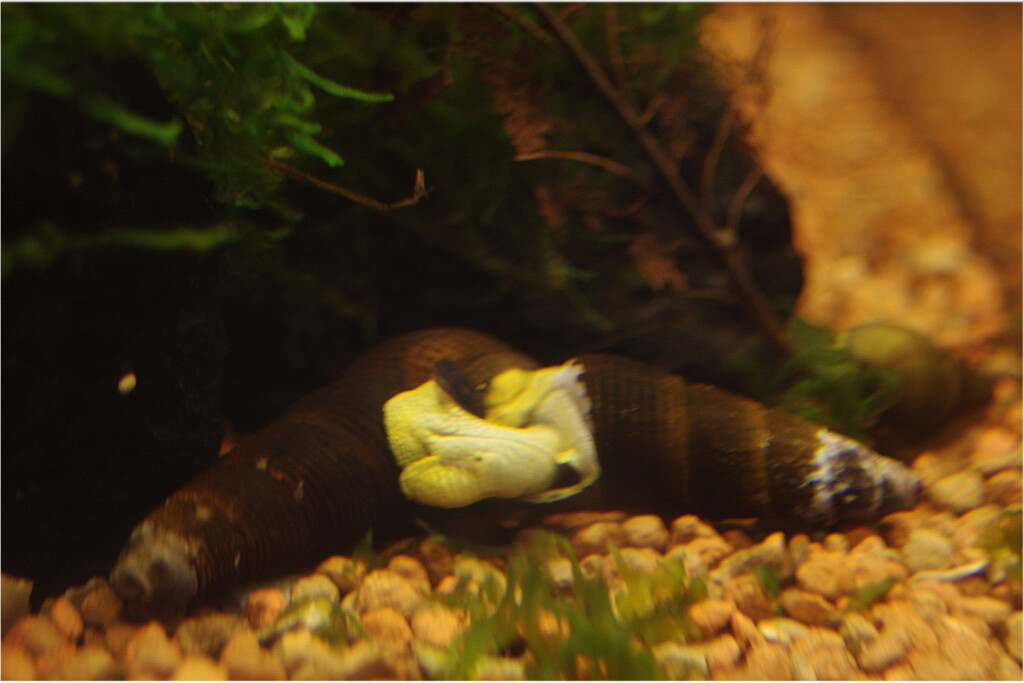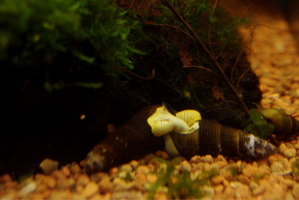 Jag var på Hornbach idag och köpte jord och en ros men det åkte med 2 gula Tylomelania också + 2 pyttesmå bebbar som jag fick på köpet