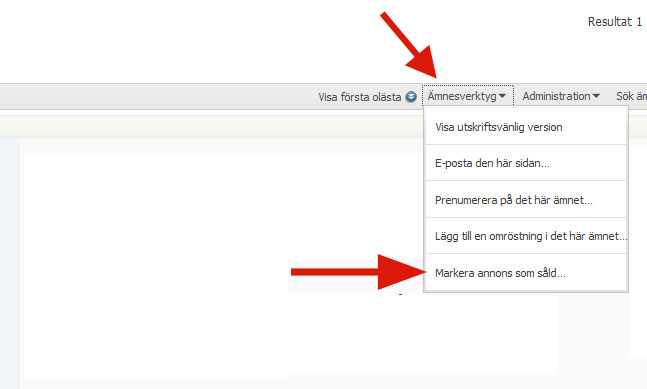 Gå först in i din annons. Tryck sedan på “Ämnesverktyg”, sedan “Markera annons som såld”.