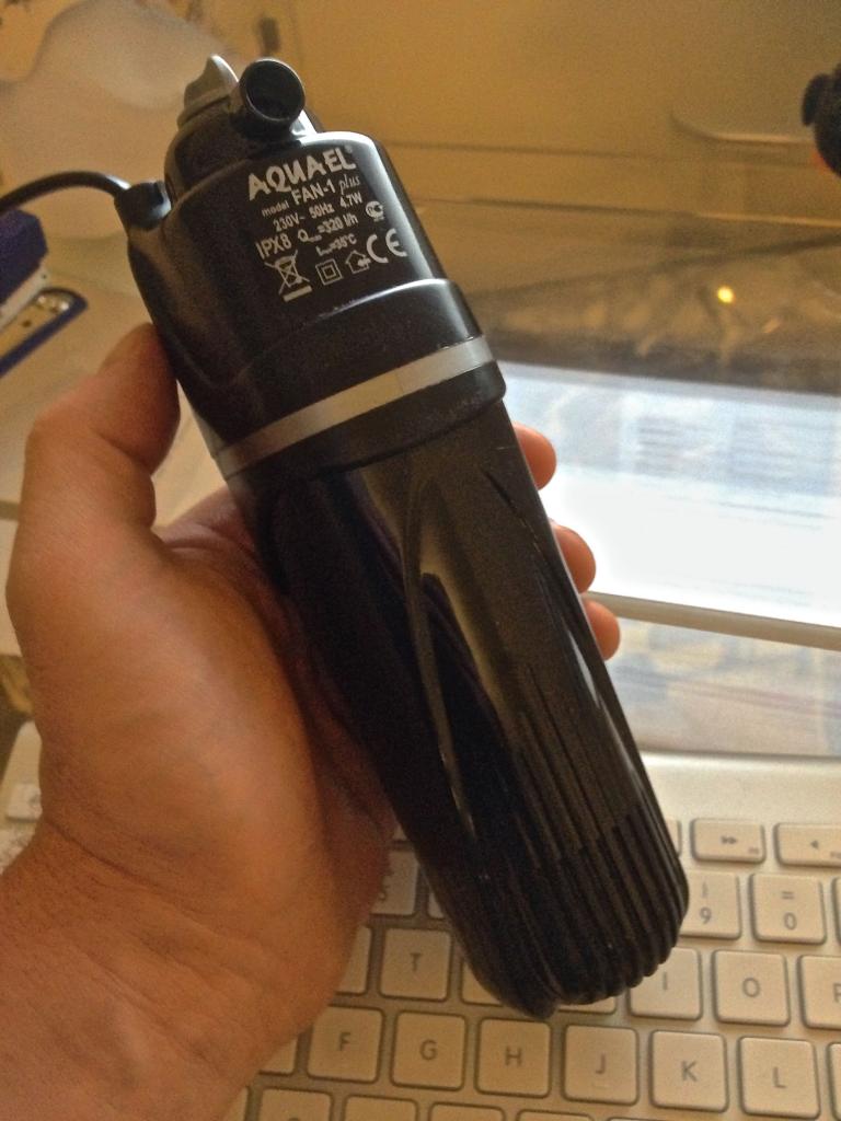 Även om jag är ganska nöjd med AquaEl’s pump “Pat Mini”(uppe till hö. i karet) som är väldigt tyst så känns filter mediet litet(verkar större på bild än i verkligheten). Det känns som att karet alldeles för lätt kan bli utsatt för svängningar i biocyckeln tex: när den lilla svampen skall rengöras. Mitt substrat är ju ganska tätt också 07-1,2mm vilket gör att jag är osäker hur effektivt det kommer fungera som en del utav biofiltret. Jag fick med mig en extra pump också AquaEl “FAN-1 plus” med en del som fattas. Den har jag bestämt mig för att bygga om till ett Nano helcyckel filter ammoniak->Nitrit->Nitrat->Nitrit/kvävgas…återkommer inom kort med detta…