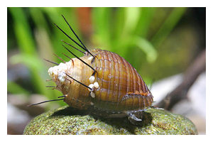 Update: My Thiara cancellata are doing fine. It seems they are getting enough food (always a worry with them). Daytime they are completely gone, deep in the grus. When it is dark, they come out and I can look at them with a flashlight. Too bad I cannot breed them; saltwater and such needed.