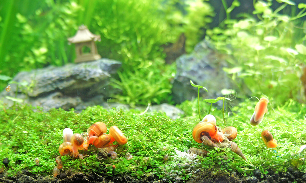 Obs. Den större med dåligt skal är en akvarieaffärs snäcka… därav det dåliga skalet…