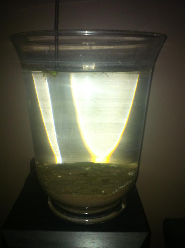 Ha bra med snabbvæxande væxter,hornsæv ær vældigt bra på att ta næringsæmnena i ett så litet kar,mina yngelpar av dværgkræftor går i 12 liters kar med billifilter och led ljus.