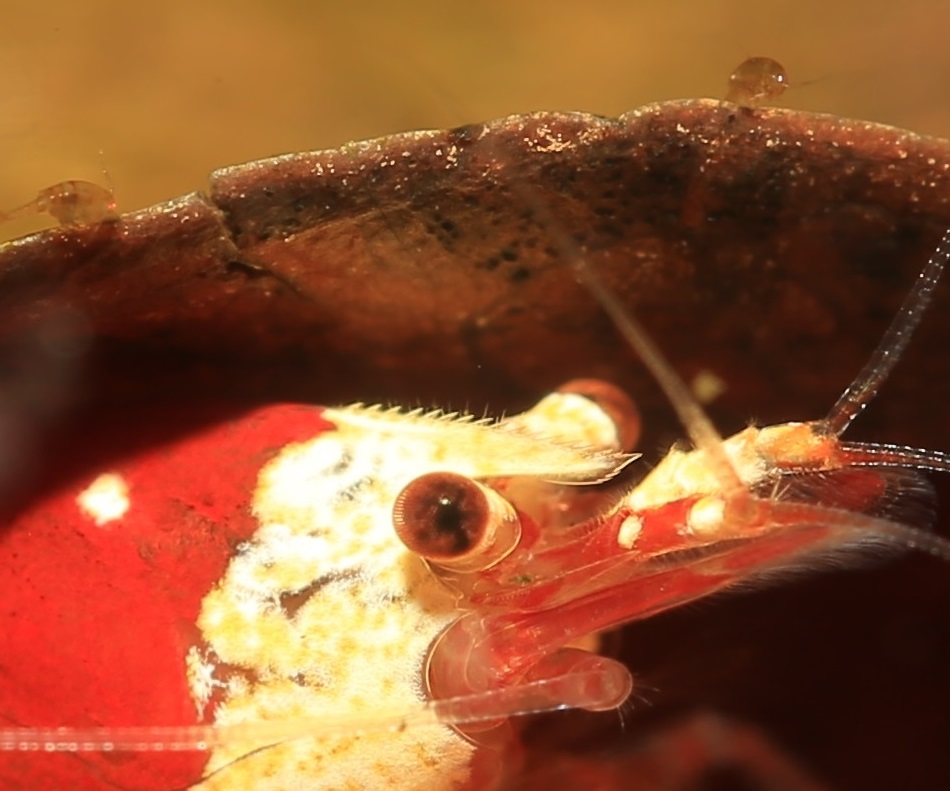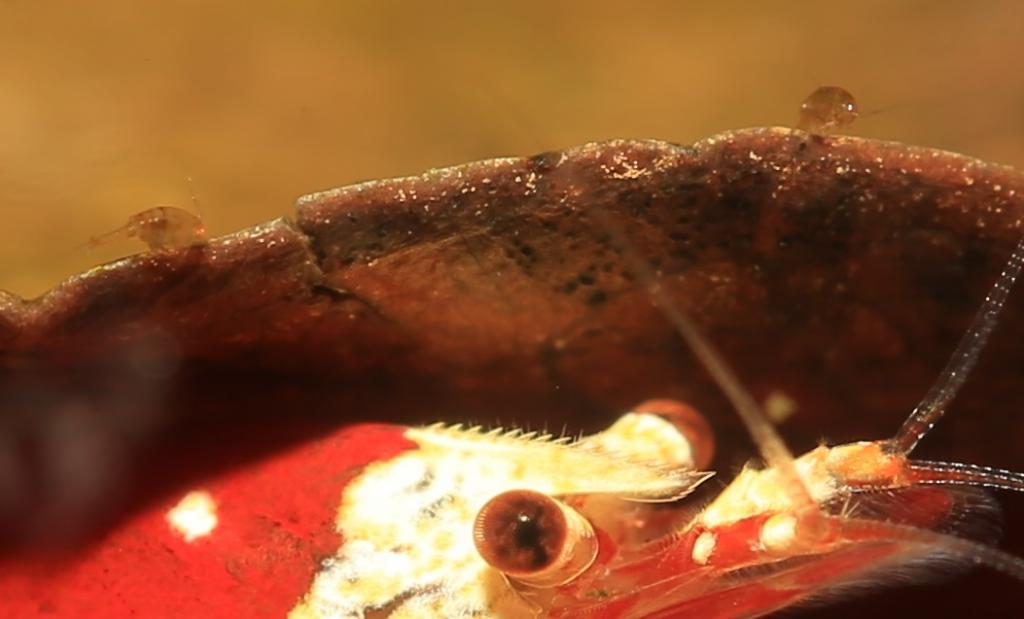 Vad är det för kryp som sitter på bladets kant precis ovanför räkans huvud (förstora bilden för att se dom)