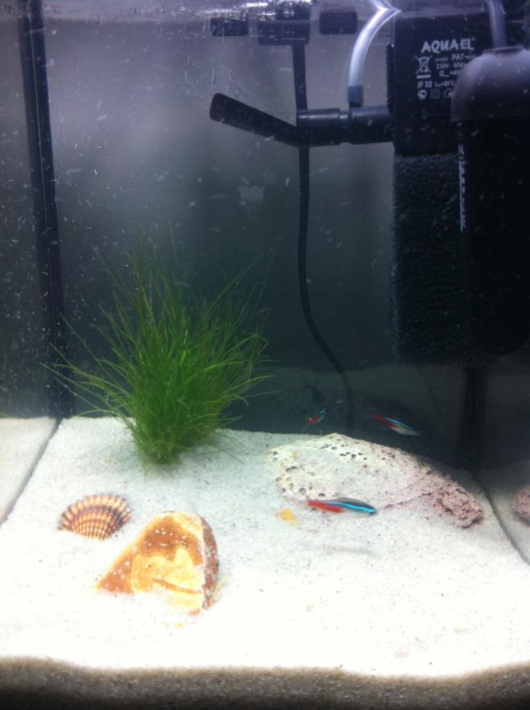 Eftersom jag sålde mina gamla akvarium (70 & 250l) för ett par år sedan pga flytt osv inhandlade jag ett litet 10 liters.