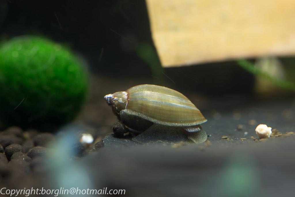 Ser ut som en Stor dammsnäcka (Lymnaea stagnalis). De snäckätande snäckorna äter dem.