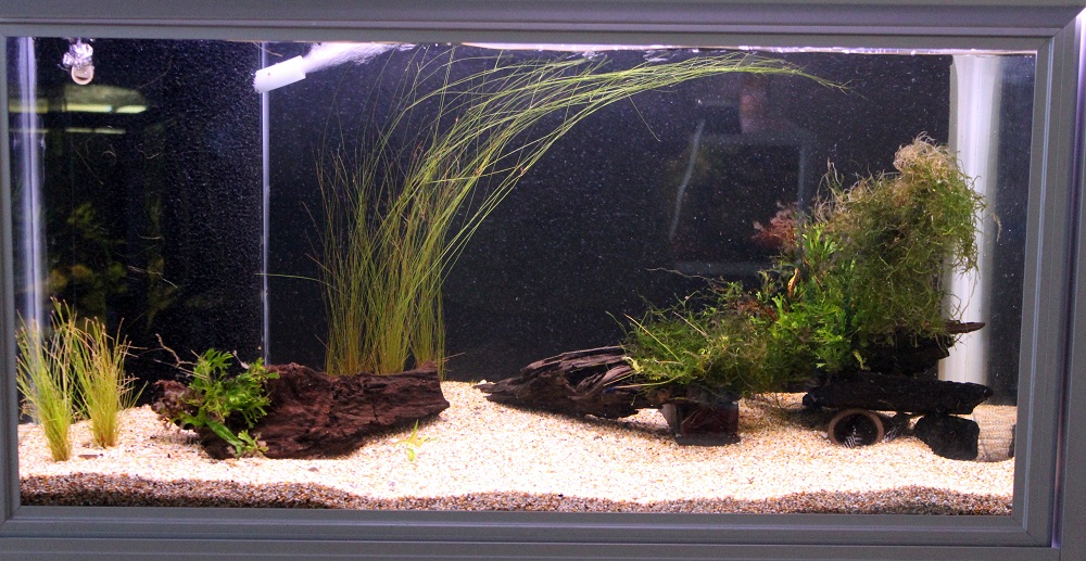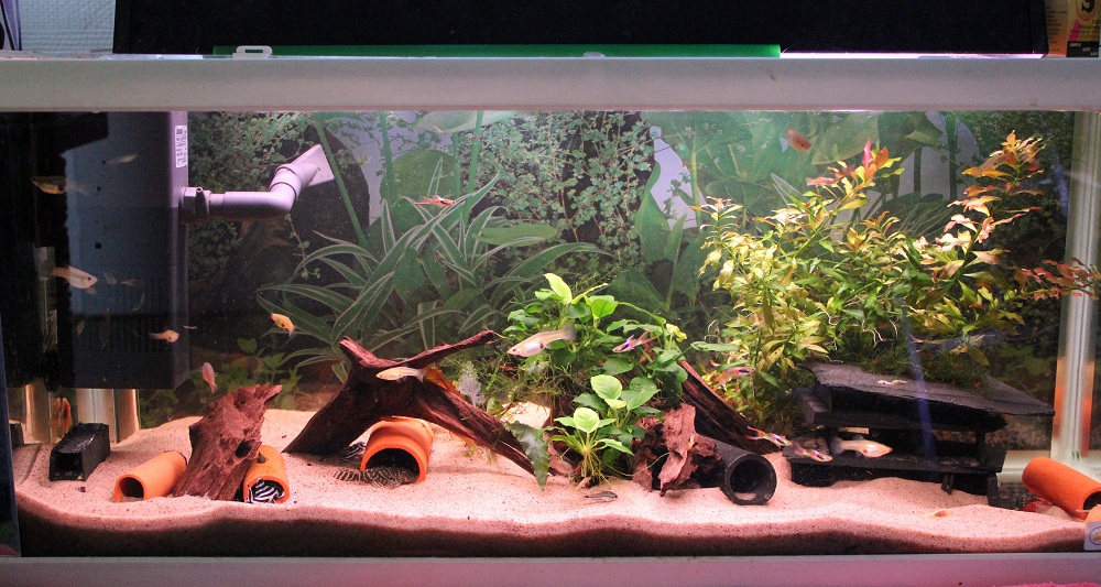Enkel inredning med några gömställen och starkt strömmande vatten, är det som funkar bäst.